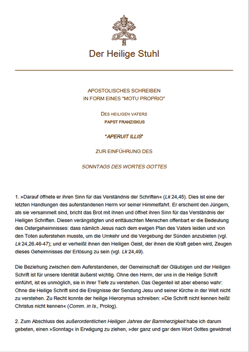 Apostolisches Schreiben des Heiligen Vaters Papst Franziskus